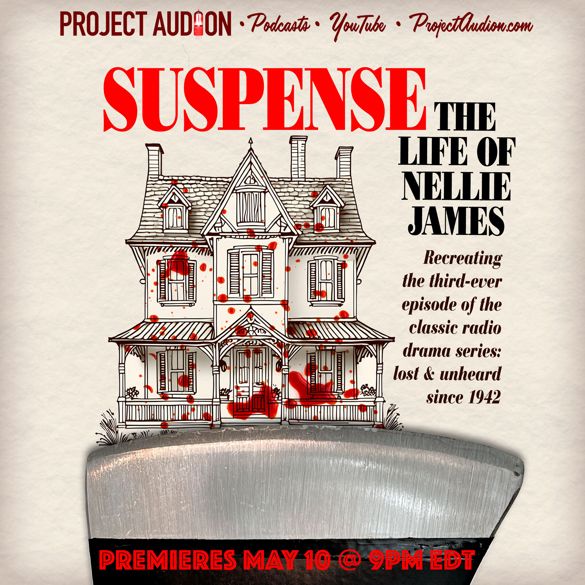 Suspense is one of classic radio's most highly-regarded dramas -- with good reason. It sustained a remarkably high quality level of dramatic tension for 20 years, as the many surviving recordings attest. But a handful of episodes are lost - and Project Audion now recreates one of them. "The Life of Nellie James" was intended as Suspense's premiere, but circumstances pushed it back to the third episode. It was performed once, live, on July 1, 1942, but never heard again. Until now -- as Project Audion, kicking off its fifth season, brings together a transcontinental cast in a live transcription of "The Life of Nellie James" from the original 1942 script. A dreadful murder takes place in the Simon James home, and justice is done …or is it? It's a tale well-calculated to keep you in …Suspense!