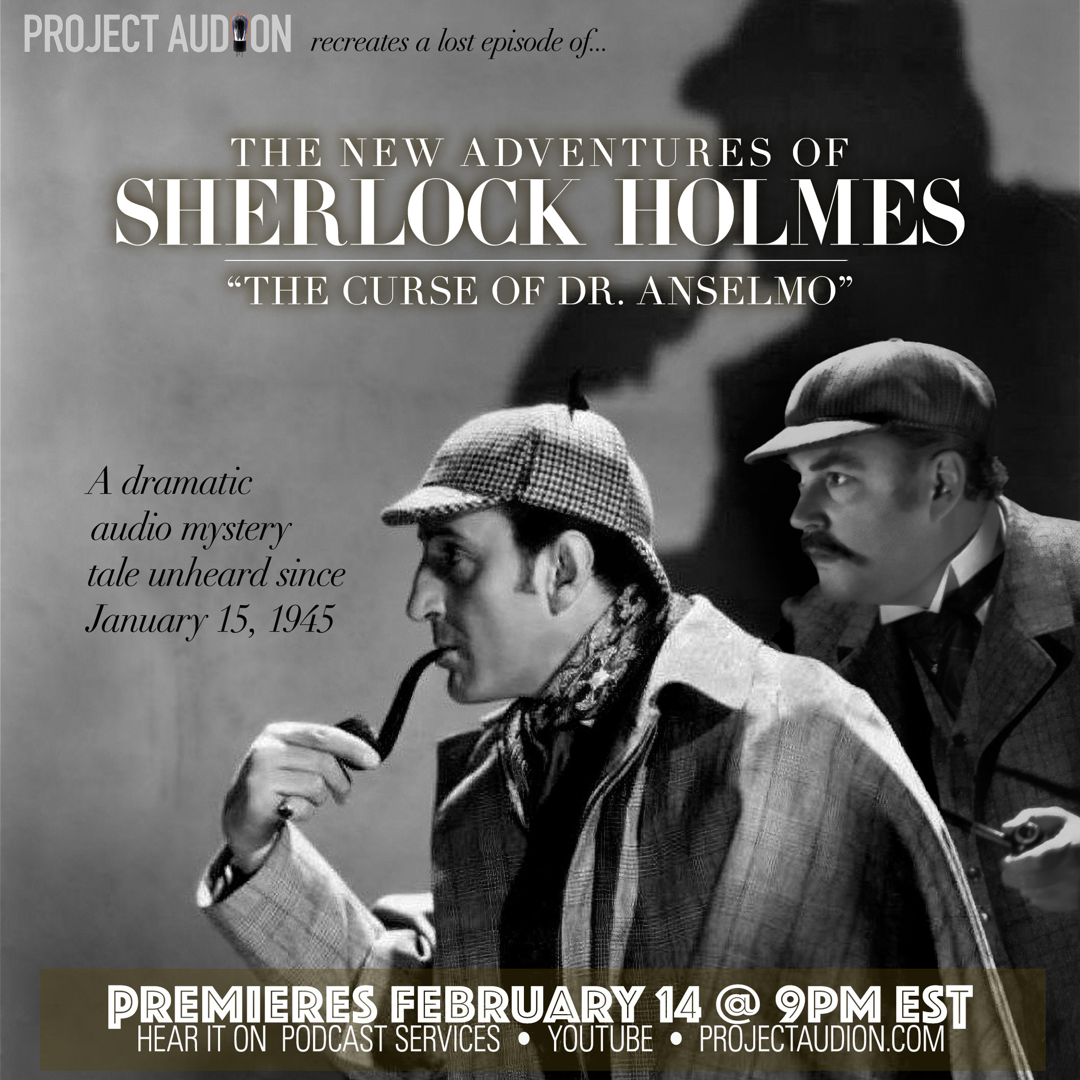 Our chosen script (which aired only once, on January 15, 1945) "The Curse of Doctor Anselmo," carries its own mystery - the secret identity of the man who co-wrote it pseudonymously. Will you discover whodunnit? Will Holmes fall under Anselmo's curse? Will the Petri family take the time to bring you good wine? All will be revealed in this delightful half hour audio drama, faithful to the original series' sound and spirit. Our cast: