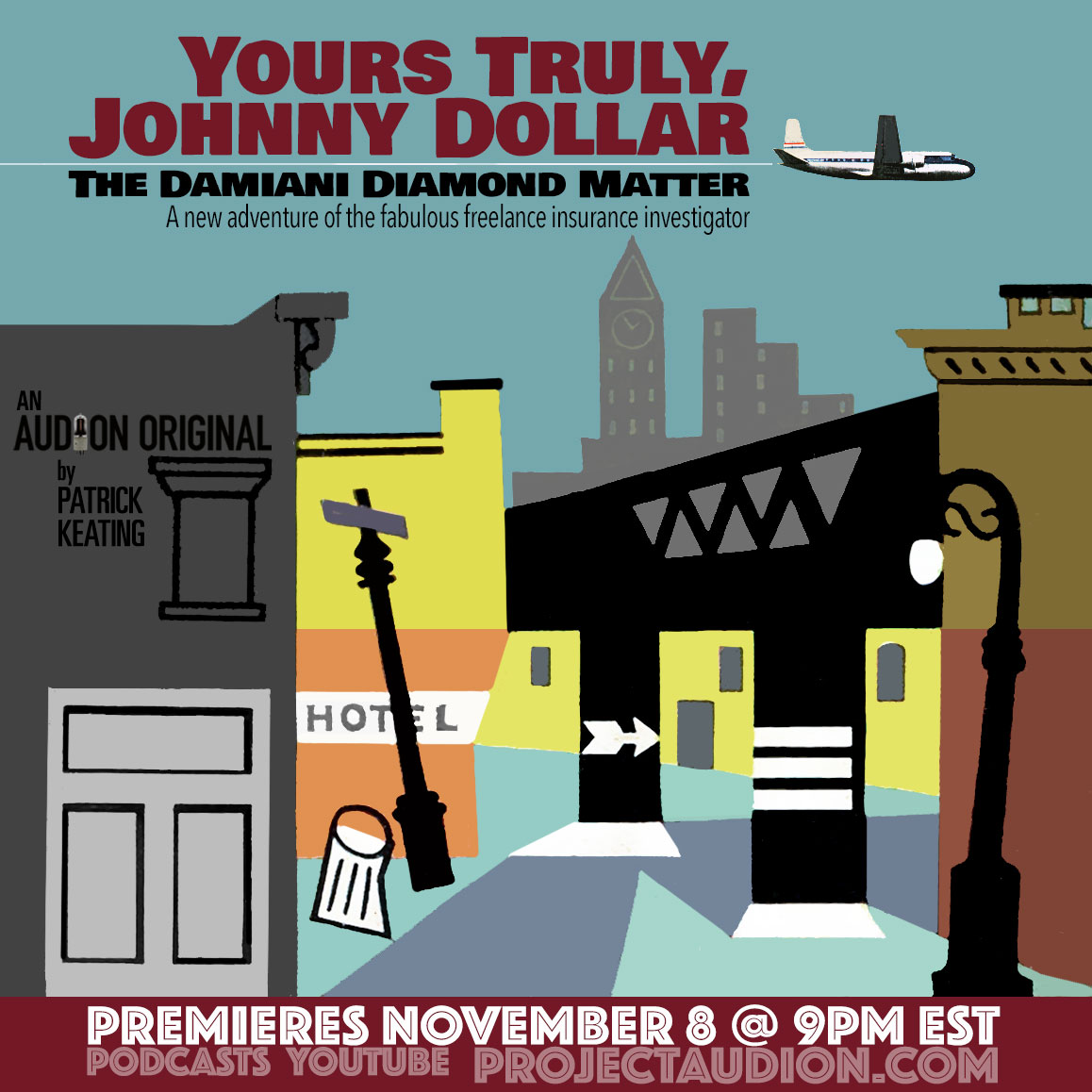 Now Project Audion presents a new Johnny Dollar script, written by Patrick Keating in the style of the original episodes, and transcribed live (via Zoom) in the classic audion drama manner. Johnny Dollar travels to Texas to learn about the Damiani Diamond, and what has happened to it… Our cast includes: